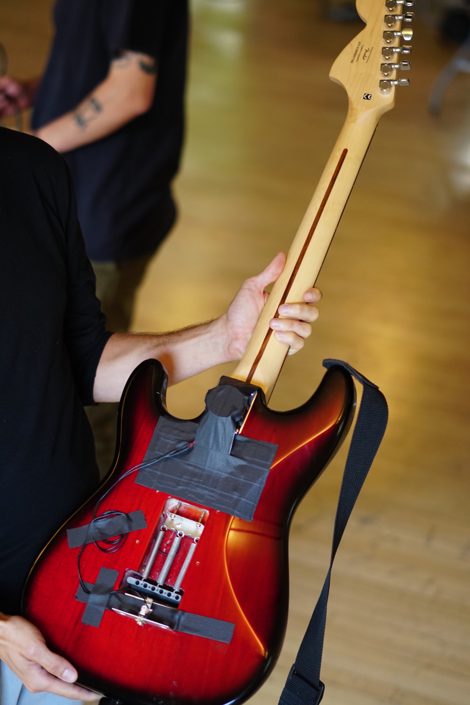 Projet présenté lors du HackLab (Une initiative de MusicMotion en collaboration avec Google Magenta, Mutek et l’ONF.) Une guitare entre dans une boucle infinie de feedback grâce à un haut-parleur contact collé directement à l’arrière de la guitare. Le son est modifié et contrôlé avec le mouvement de ma main grâce à un capteur Leap. Les images qui proviennent d’une banque d’image de l’ONF sont influencés par le son de la guitare.