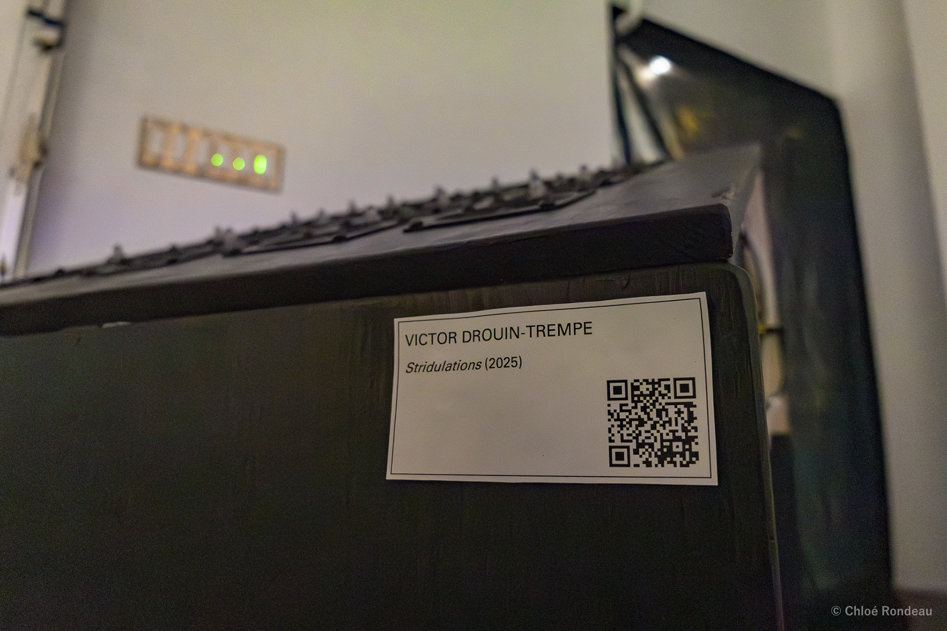 “Stridulations” questions the way we perceive living things, revealing the porosity between the natural and the artificial. By recreating a sound phenomenon we spontaneously associate with nature, the installation confronts us with a synthetic form of life, where the rhythm and organization of sound are enough to evoke a living presence.